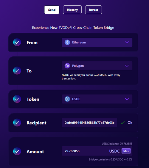 Ensure that your Evodefi bridge window is looking similar to this with the assets that you're bridging.